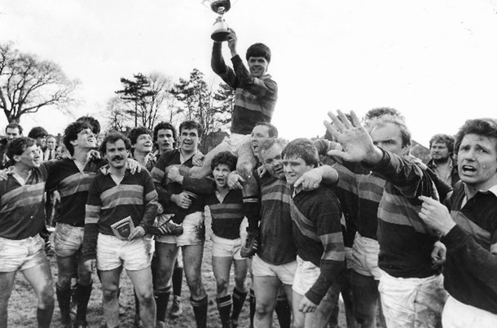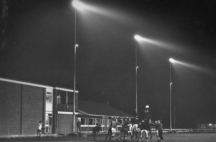 There were important developments in other areas. Mini and Youth rugby was introduced in 1974 and soon began to flourish. In the same year match floodlights were erected enabling all teams to have midweek or Friday evening matches. It also saw the introduction of a prestigious floodlit cup, a Schools’ Cup, County Games and a Sevens competition. By the end of the 70s over 20 floodlit matches were being played each season. It was, and is, a mindset of continued improvement and enhancement of our facilities and it placed us at the forefront of other clubs in the county.